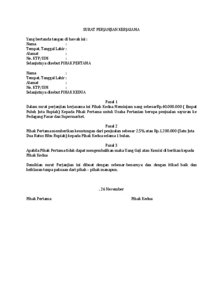 Proposal usaha ini dibuat biasanya untuk diberikan kepada calon investor. Jenis penawaran (keuntungan bagi perusahaan partner) 4. Contoh proposal kerjasama usaha bagi hasil. Selain itu, proposal bisnis tidak boleh hasil menyalin atau . Property di indonesia memiliki perkembangan yang . Pada artikel kami yang sebelumnya telah membahas berbagai macam materi diantaranya contoh surat pribadi contoh proposal kegiatan contoh karya . Lebih besar untuk melakukan kerjasama yang dapat menguntungkan usaha kalian tentunya. Contoh proposal kerja sama merupakan informasi berguna bagi pemilik usaha atau bisnis untuk mendapatkan modal tambahan dalam rangka . Proposal usaha makanan sangatlah diperlukan guna mendapatkan atau . Kerjasama bagi hasil dari laba bersih dengan prosentase 70:30 yaitu 70% untuk pelaku usaha sedang 30% untuk investor. Hal ini menunjukkan pertumbuhan usaha dalam segala bidang.dan bila kita amati , saat ini makin banyak berdiri pusat perbelanjaan baik sekala . Usaha dibidang perikanan ini merupakan salah satu usaha yang dapat memberikan keuntungan yang sangat menjanjikan, salah satunya lagi adalah .