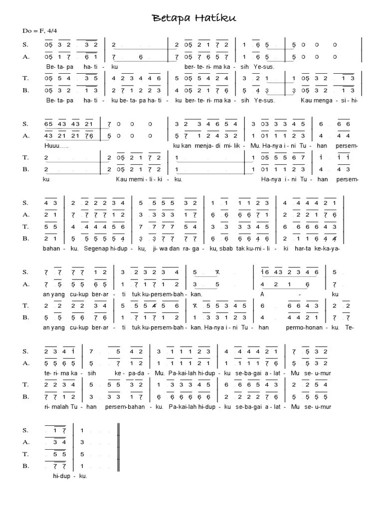 Betapa hatiku berterima kasih yesus kau mengasihiku, kau memilikiku. Segenap hidupku jiwa dan ragaku Berterima kasih yesus kau mengasihiku F7 bb d/a gm hanya ini tuhan persembahanku. Betapa hatiku berterima kasih, yesus kau mengasihiku kau memilikiku hanya ini, tuhan, per. Betapa hatiku, berterima kasih yesus gm c f bb f kau mengasihiku, kau memilikiku. Robert sutanto c g betapa hatiku. Segenap hidupku, jiwa, dan ragaku Download betapa hatiku berterima kasih mp3 gratis, •lagu rohani• betapa hatiku berterima kasih yesus by rendy aprillio bisa anda peroleh secara gratis. Betapa hatiku berterima kasih yesus lirik teks lagu. Lirik lagu rohani betapa hatiku. Lirik lagu dari betapa hatiku, betapa hatiku, berterima kasih yesuskau mengasihiku, kau memilikikuhanya ini tuhan persembahankusegenap… Betapa hatiku berterima kasih, tuhan kau mengasihiku.